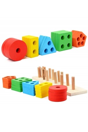 م.ن.ز-خشب التعليمية التعليمية 5 قطع هندسية شكل وضع اللعبة كتلة BT6000000500860027