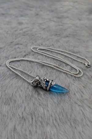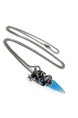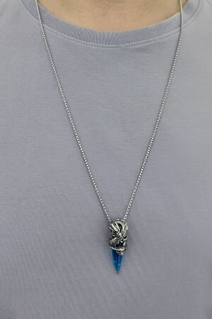 منز-دراكون بلو ستون 75 سم سلسلة طويلة الرجال حلقة عنق فولاذ dm65