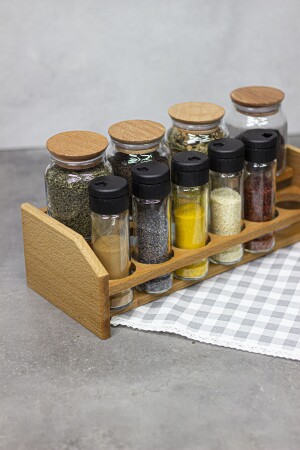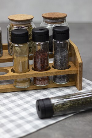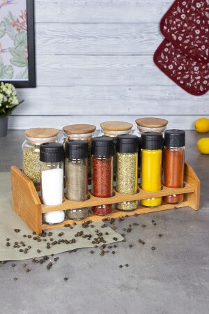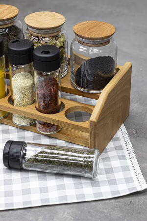 12'li Kapağı Kendinden Kaşıklı Ve Etiketli Baharatlık Seti 300 ml Gold Etiketli Cam Baharat Takımı