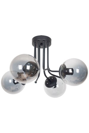 Pare Model Modern Spor Siyah 4'lu Glop Füme Camlı Avize