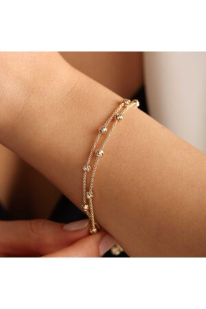 Dorika Çerçeveli Yarım Altın Üç Sıralı Pullu Altın Bileklik
