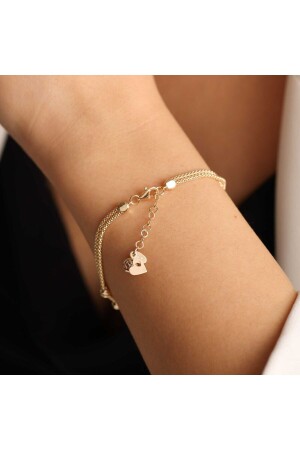 14 Ayar Altın Taşlı Kalp Bileklik Üçlü