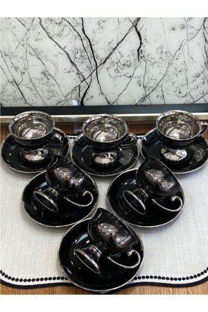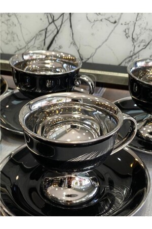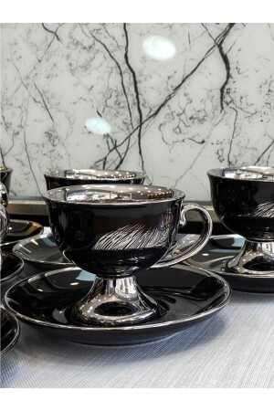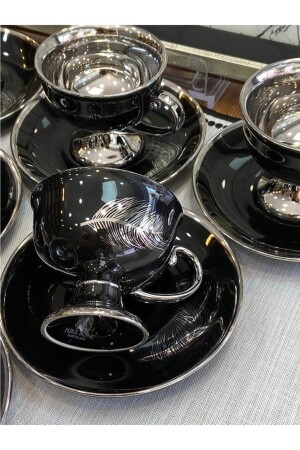 MNZ-Sembol مجموعة من الريش الفضية السوداء من 6 كوبات قهوة من البورتسلين HARLEM-670