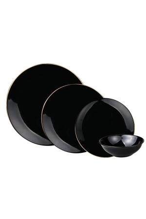 MNZ-"مجموعة العشاء المستديرة ذات 24 قطعة لـ 6 أشخاص مصنوعة من البورتسلان". لون: أداة سوداء: البورتسلانتومات: 24 قط