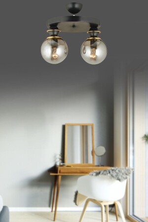 Pare Model Modern Spor Siyah 4'lu Glop Füme Camlı Avize