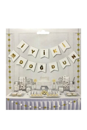 نص عيد ميلاد سعيد بالخط الأبيض الذهبي. كل حرف من علم عيد ميلاد مكتوب عليه عيد ميلاد سعيد يبلغ طوله 15x17 سم. زينة عيد ميلاد مصنوعة من ورق