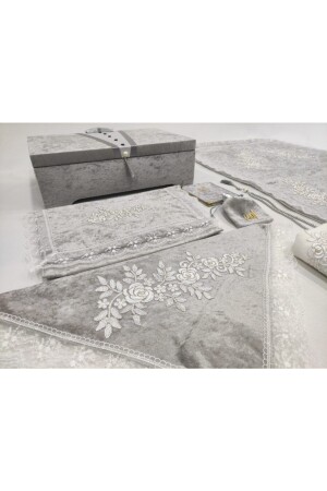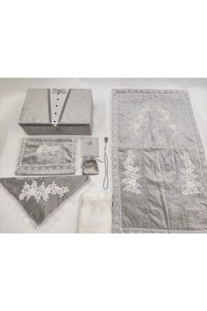 3 ADET Fransız Güpürlü İşlemeli Kadife Çeyizlik Gelin Seti Seccadesi