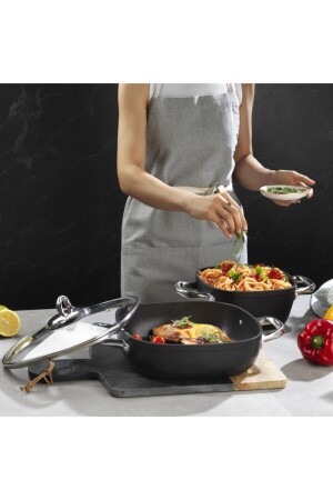 غسطونية MNZ-Schafer 24 سم Master Granite Induction Flat Pot Gastronomy Master "الوضع الجديد للطائرات! أكثر مرونة مع سطحها الخاص الحامية ضد الآ