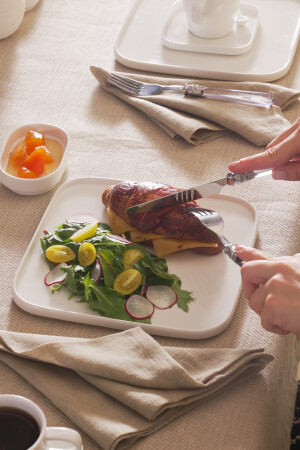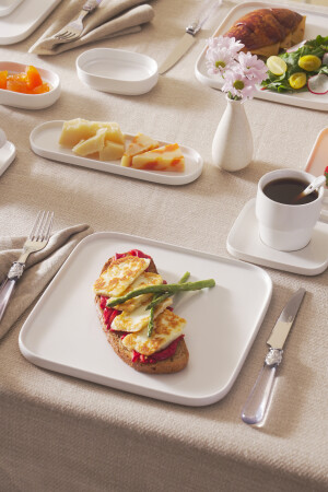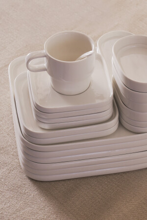 64 Parça 12 Kişilik Platin Modern Krem Kahvaltı Takımı