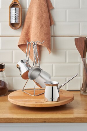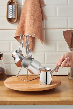 29015 Modern Askı Standlı 4 Parça Çelik Cezve Seti