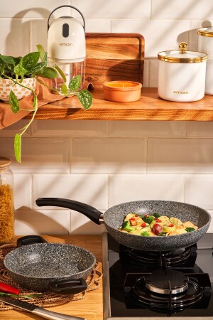MNZ-Emsan Lucca 2 قطعة علبة وعلبة صلصة خضراء زرقاء 18-24 سم مواد: غرانيت غطاء مجموعة المحتوى 18 سم علبة 24 سم