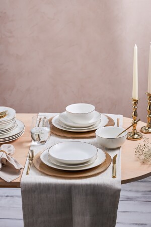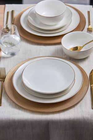 MNZ-كاراكا ليون الذهب 24 قطعة طقم العشاء البورتسلاني لـ 6 أشخاص طقم يتضمن 6 لوحات خدمة (27 سم) 6 لوحات عميقة (20