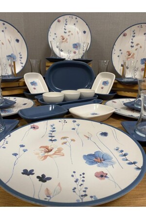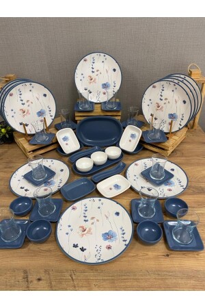 Çiğdem Blue Model 12 Kişilik 21 Parça Kahvaltı Takımı Kahvaltı Seti[ Mavi 12]