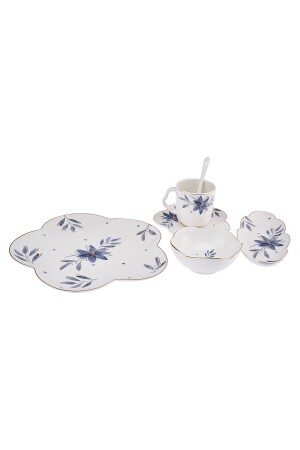Çiğdem Blue Model 12 Kişilik 21 Parça Kahvaltı Takımı Kahvaltı Seti[ Mavi 12]