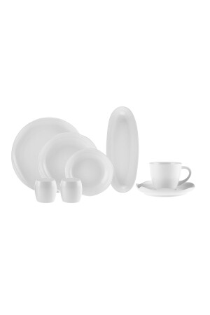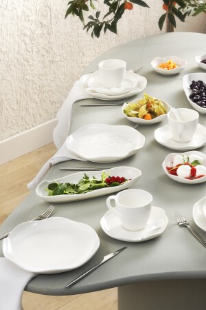 64 Parça 12 Kişilik Platin Modern Krem Kahvaltı Takımı