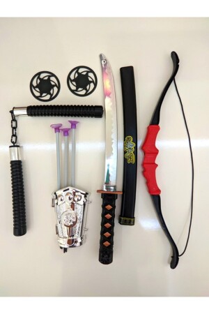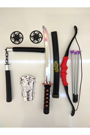 MNZ-الصور هي صور منتجات أصلية التقطتها البائع. تتكون من 10 قطع: السهم، القوس، سيف ساموراي كاتانا، سيف سيف، درع النونتش