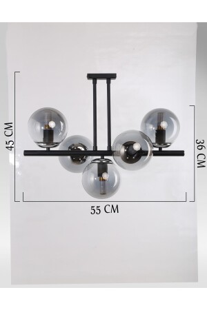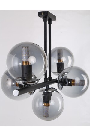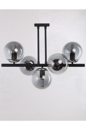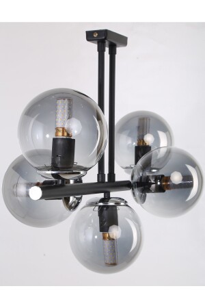 Pare Model Modern Spor Siyah 4'lu Glop Füme Camlı Avize