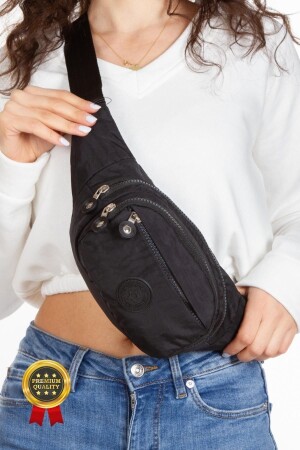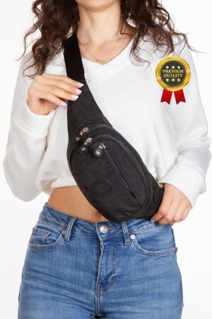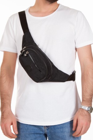Unisex Siyah Keten Kumaş Telefon Bölmeli Çapraz Askılı Omuz Ve Bel Çantası Günlük Çanta