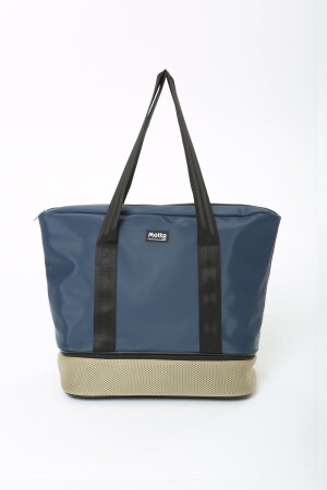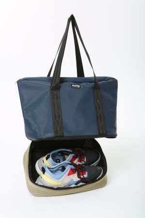 منز البحرية الأزرق البيجي البوليستر الألياف الرياضيات والحقيبة السفرية للمرأة مع سبر وشريط الكتف ومقعد الأحذية MTBG
