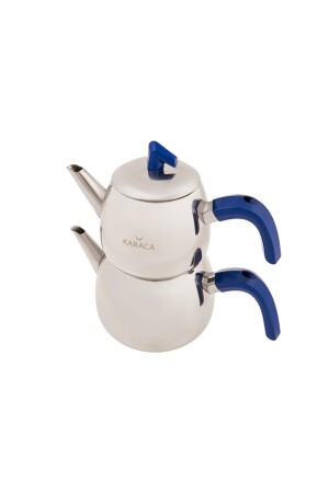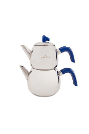 MNZ-Karaca Akdeniz Teapot زرقاء داكن مجموعة محتويات الشاي 1.0 لتر زجاجة ماء 2.0 لتر، المواد: الصلب