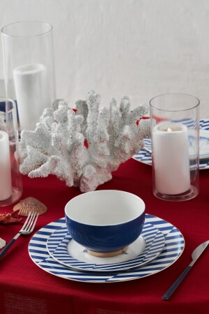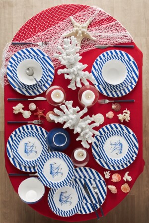 (منز) البحرية 18 قطعة طعام عشاء من الفورسلين لـ6 أشخاص