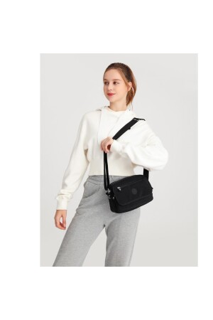 Kadın Siyah Çapraz Ayarlı Askılı Klinkır Kumaş Postacı Omuz Çantası