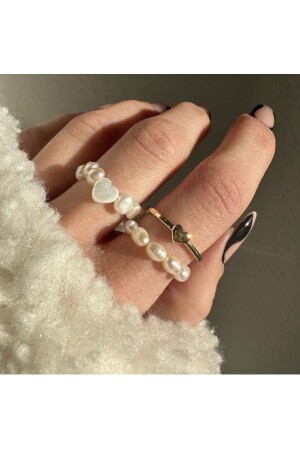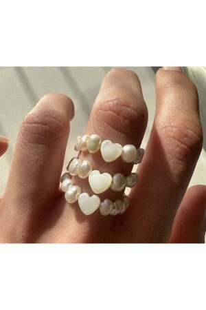 Beyaz Gerçek Inci Yüzük Kalp Şeklinde Pırlantalarla Süslenmiş Yüzüğün Gövdesi Rodyum(08)