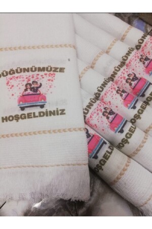 Düğün Havlusu Araba Havlusu Konvoy Havlusu 12 Adet Okuluk Havlusu - Çiçekkli 5