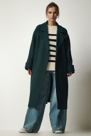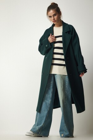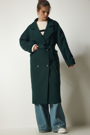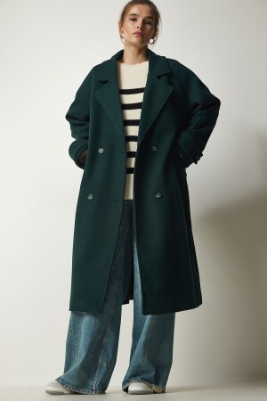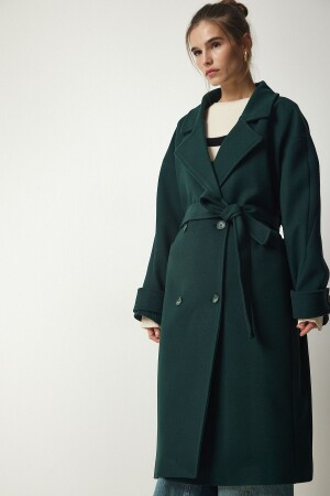 منز الزوجات الزمرة الخضراء مزدوجة الثقة الثدي حزام كبير معطف كاشمير TO00115