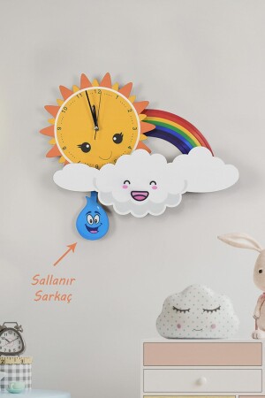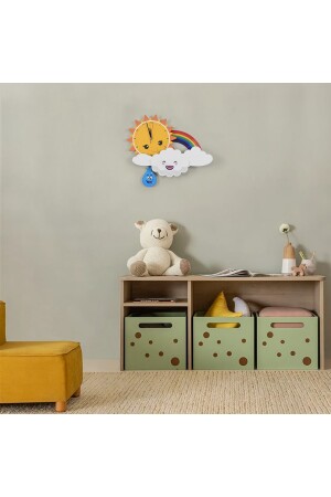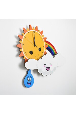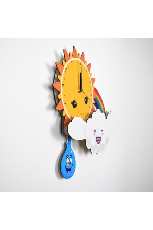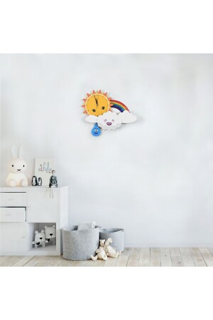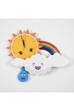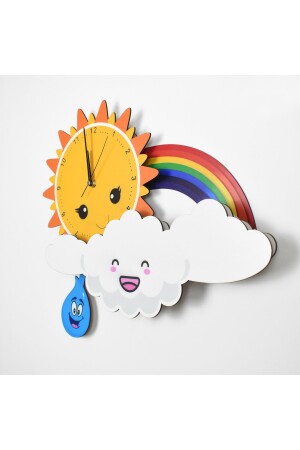 (منز) - السحابة الجميلة، الشمس والقوس المطر غرفة الأطفال ساعة الجدار الخشبية (إلف-2312025-3d ELF-2312025)