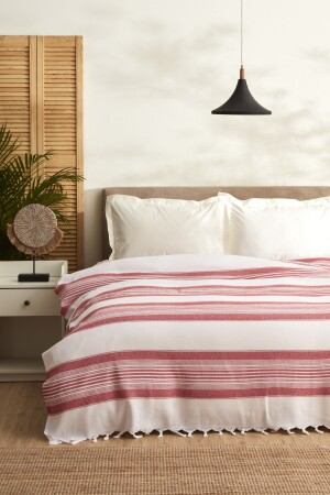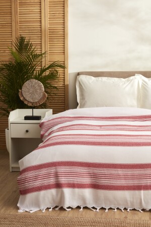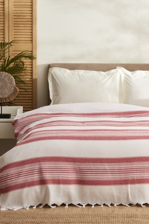 Buldan Işi Otantik Kanaviçeli Gipürlü Kırmızı Nakışlı Çarşaflı Çift Kişilik Kutlu Pike Takımı