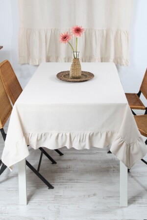 مُقسمة من طراز MNZ-Tile، خالية من الرعاية، خالية من البقع، ملابس طاولة من اللون، كريم 160 × 220 سم