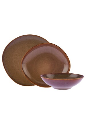 MNZ-Emsan العصر الجديد 18 قطعة عشاء مجموعة 6 أشخاص مادة منخ حجر