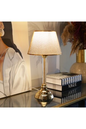 22'lik Abajur Şapkası - Krem Gold Detaylı