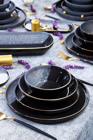 (MNZ-Matte) عشاء أسود / فطور مجموعة 30 قطعة لـ 6 أشخاص dmtaks202330