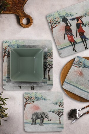 (منز) - النساء الأفريقيات (مجموعة عشاء مساحة خضراء) 24 قطعة لـ6 أشخاص (ميكروتوسن)