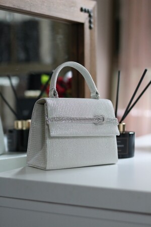Kadın Yuvarlak Gümüş Taşlı Bilezik Aksesuarlı Abiye Clutch Portföy Çantası