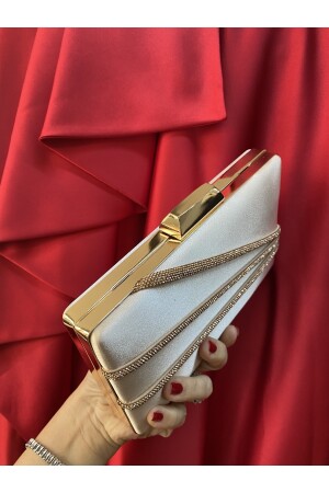 Kadın Yuvarlak Gümüş Taşlı Bilezik Aksesuarlı Abiye Clutch Portföy Çantası