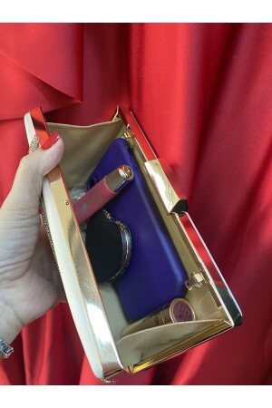 Simli Altın Renk Taşlı Işlemeli Kadın Abiye Portföy Clutch Çanta Indirimli