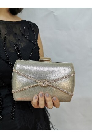 Simli Altın Renk Taşlı Işlemeli Kadın Abiye Portföy Clutch Çanta Indirimli