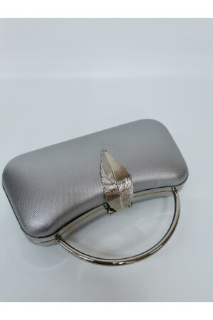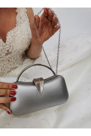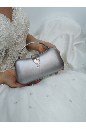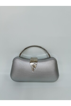 Kadın Yuvarlak Gümüş Taşlı Bilezik Aksesuarlı Abiye Clutch Portföy Çantası