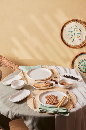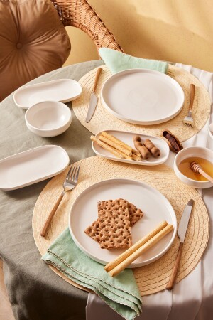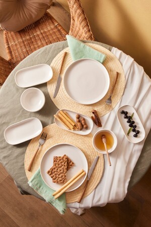 MNZ-Emsan Parla Porcelain 12 قطعة إعداد الإفطار لـ 6 أشخاص المواد البيضاء: مجموعة البورتسيلين محتوى: 6 لوحات خدمة 22 سم 4 قطع وع
