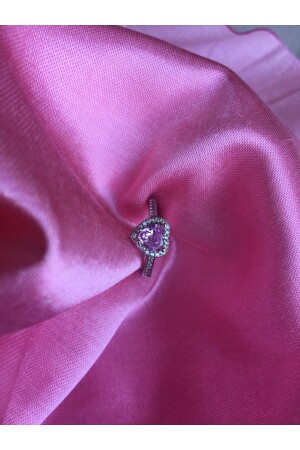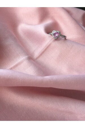 Gümüş renkli pembe taşlı kalpli yüzük portakal Çiçeği yağı hediyeli