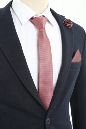 Erkek Pudra Pembe Slim Fit Dar Kesim Mendilli Kravat 5