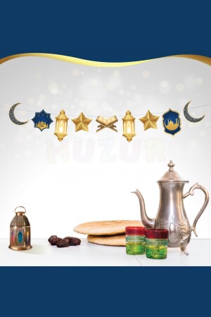 م.ن.ز- رمضان عيد أزياء معلقة الزهرة 140 سم البحرية زرقاء الذهبية راية النجم القرآن مهايا المسجد موضوع