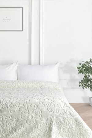 Krem Çift Kişilik Fransız Güpürlü Çeyizlik Battaniye Takımı