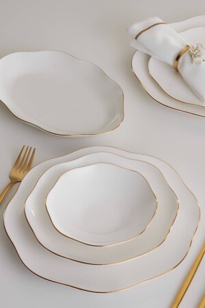 كرة الساحرة (MNZ-Karaca) سلاسة كايروس الذهب 59 قطعة عشاء العظام الجديد مجموعة لـ 12 شخص 12 قطعة 26.7 سم طقم الخدمة 12