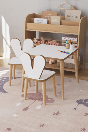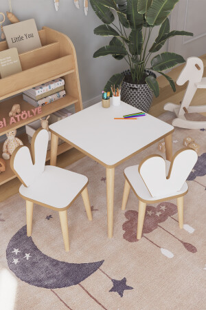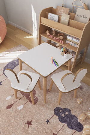 منز - طاولة ألعاب الأطفال 45x45 سم طاولة دراسة الأطفال مع مقاعد 2 45x45HAM2C