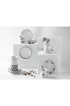 Sunum Tabaklı- Kahve Yanı Bardaklı 18 Parça 6 Kişilik Kahve Fincan Takımı- Seti
