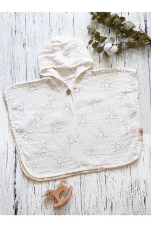 %100pamuklu Müslin Bürümcük Kapüşonlu Panço bornoz- Plaj Havlusu